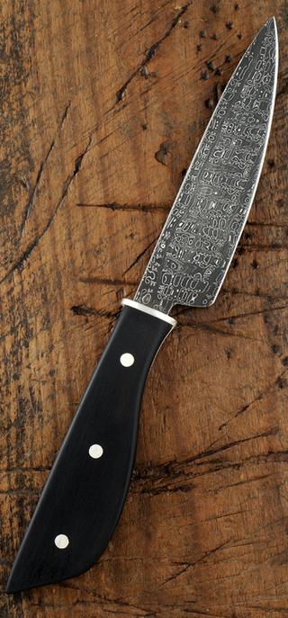 Chef's knife: Damascus steel, sterling silver and ebony handle.